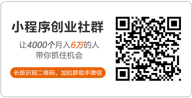 4000个利用小程序月入6万人的聚集地,一个资源共享、信息互通的开放式社群,每天分享一点关于如何利用小程序赚钱的干货知识。