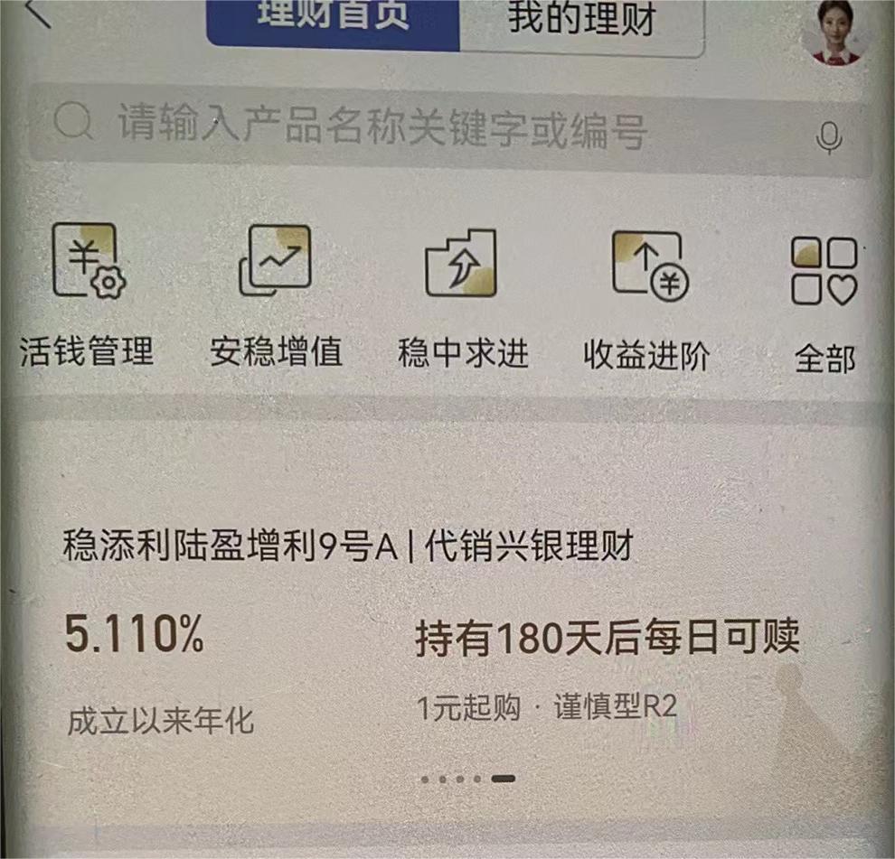 理财通评评“理”近期推出了银行热销理财产品测评系列,对各大银行APP热销的理财产品进行测评,助大家分辨热销产品优劣。前几期已测评六大国有行、招行、中信银行APP热销产品,本期测评兴业银行APP理财首页显眼位置推荐的一款产品“兴银理财稳添利陆盈9号(6个月最短持有期)日开固收类理财产品A”。