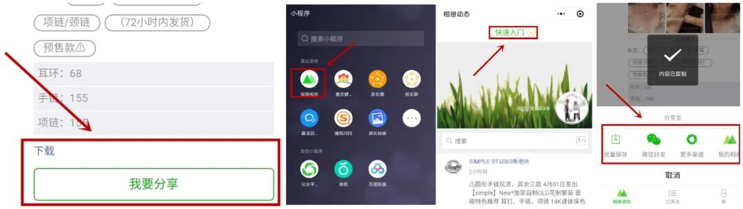 下图是微商相册小程序,许多在朋友圈活跃的微商如今都转战到了这里。