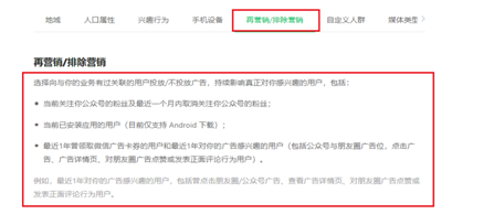 五是再营销/排除营销,就是对和广告主产生过关联的用户,选择继续展示或者不展示广告的功能
