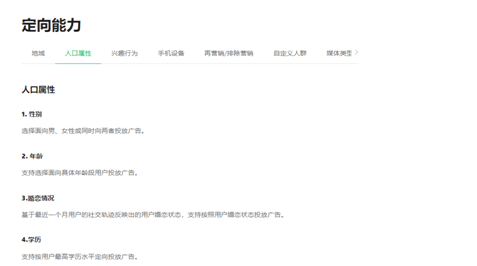二是可以定向人口属性(性别、年龄、婚恋情况以及学历)