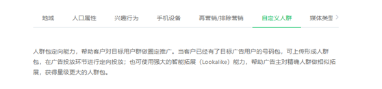 六是自定义定向,已经有目标用户的手机号等信息,直接向指定用户投放