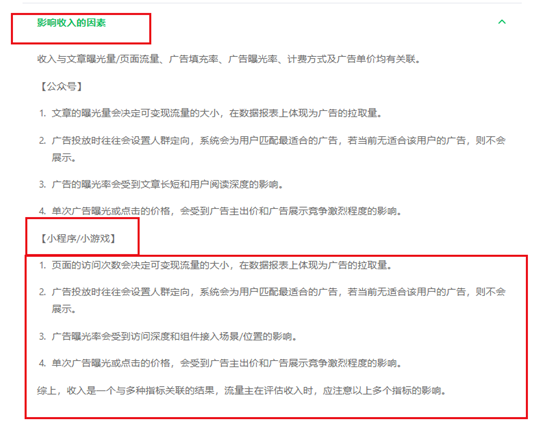 文档中说了小程序的收入的影响因素,其中提到两点: