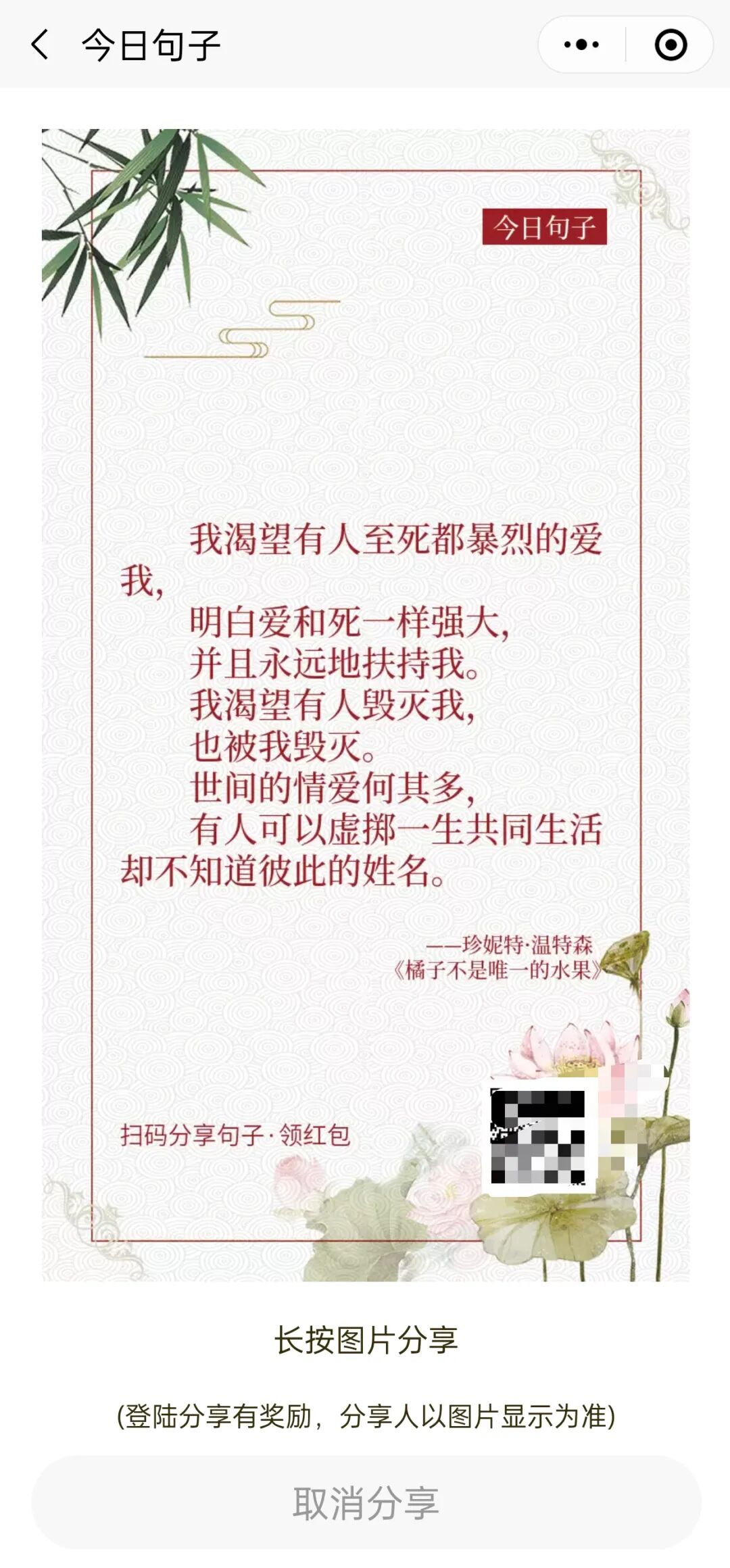 今天这个小项目非常简单,操作也不复杂。只要你发布的句子质量较高,平台就会持续为你提供流量,从而带来不断的收益。当然如果你的好友多的话,你也可以分享到朋友圈,或者分享到群里边也可以