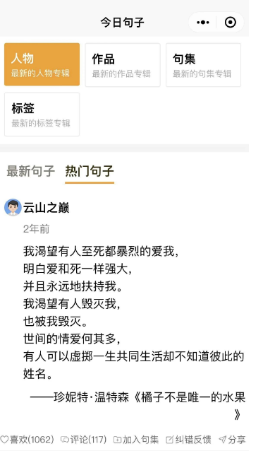 直接微信小程序搜索“今日句子”