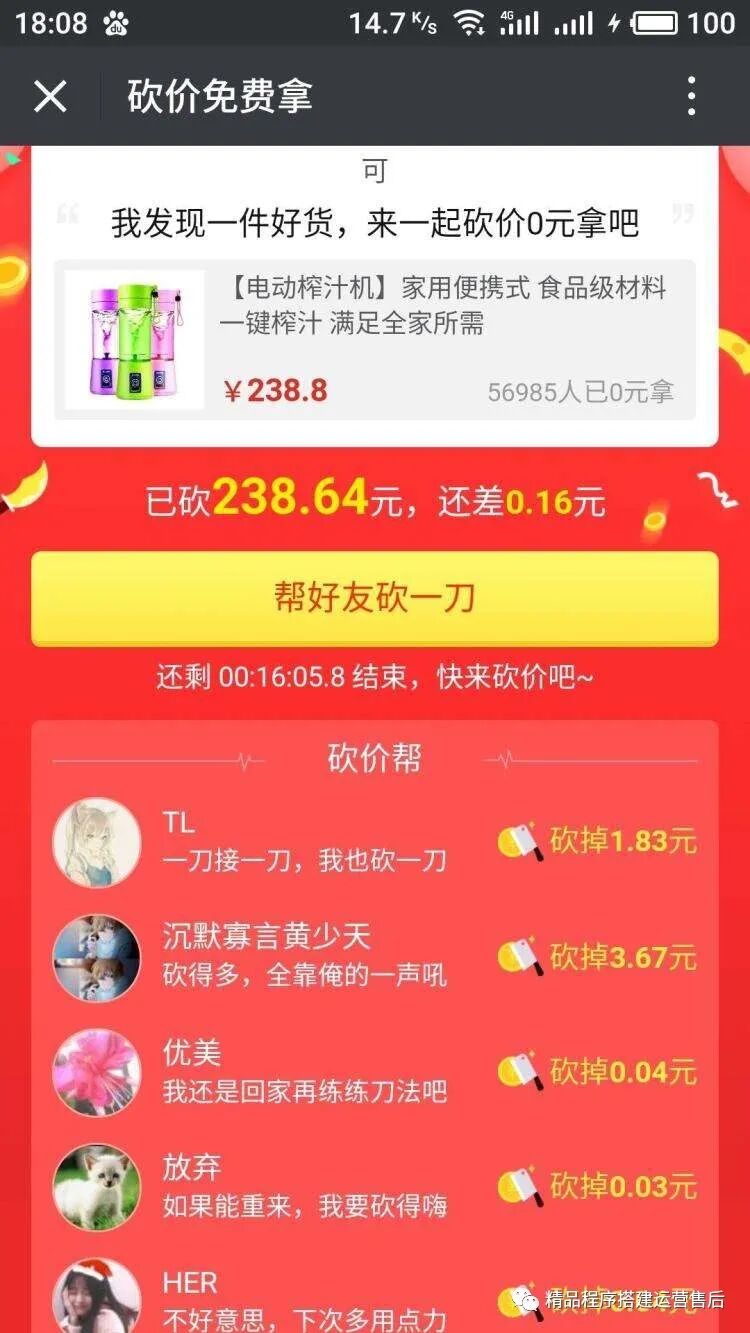那么如何把这样一个砍价的小程序,正常的运营起来,把收益做起来呢?讲这个问题之前,我先给大家讲一个特殊情况。