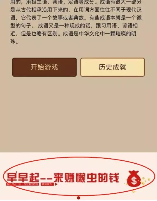 成语猜猜看因为其巨大的流量优势,已经入选小程序流量主内测成员,流量位可以给其机构带来可观的收益;一般以广告位或小程序跳转导流为主要盈利点,像成语猜不停则是将广告位作为一个固定推荐,引流给其它的一些小程序,从而也可以获取相应的利润;