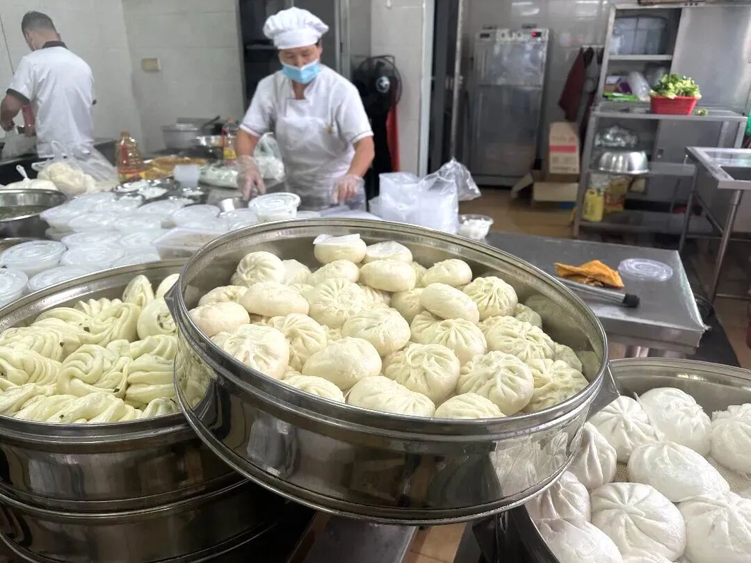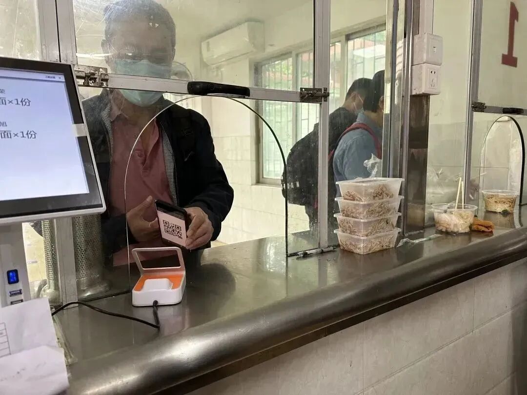 只见职工们在饭堂取餐窗口前,出示手机二维码对准扫描器轻轻一扫,工作人员就直接拿出了已经准备好的早餐。职工取餐全程不到30秒,迅速高效。