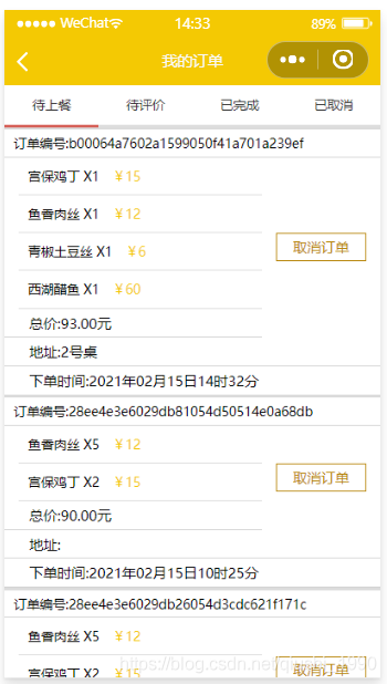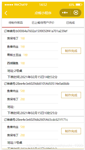 1,新下单待上餐2,已上餐待评价3,订单完成4,订单取消