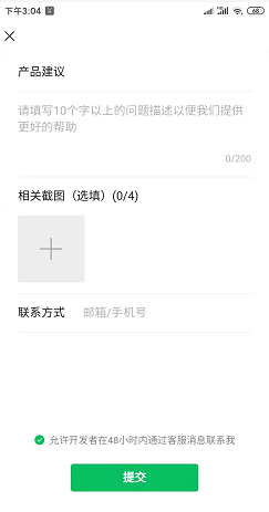 客户可以直接在小程序端提建议,建议里可以添加图片