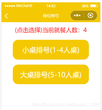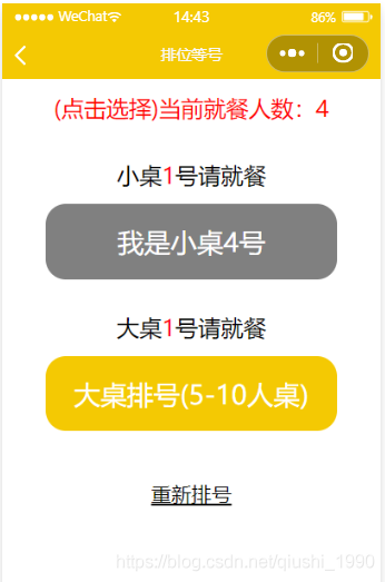 可以看出,我们可以选择就餐人数,排大桌或者小桌。我这里已排小桌为例