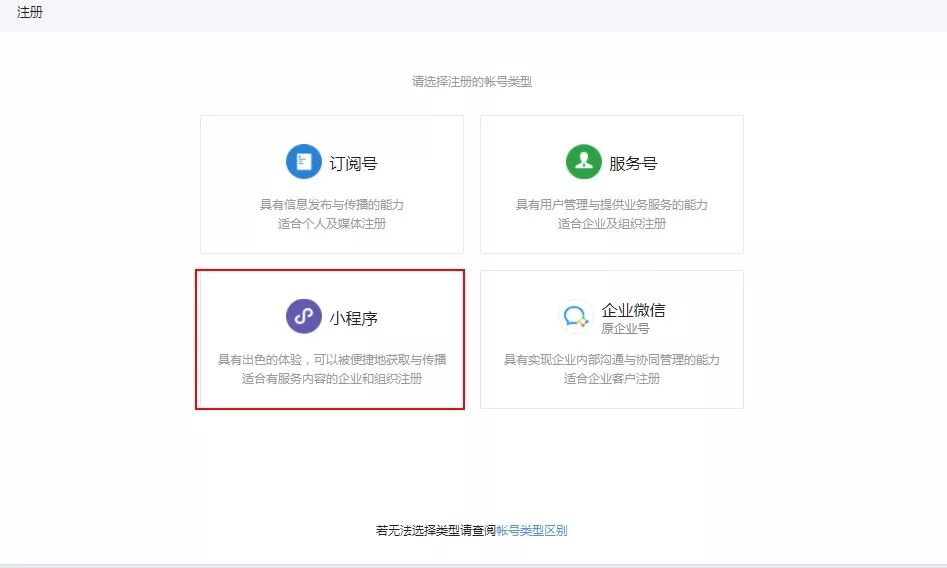 我们一步一步来。首先,申请的网站:mp.weixin.qq.com。其实就是申请公众号的网站,只不过在选择类型时,你要选“小程序”。有一个邮箱就可以申请了。