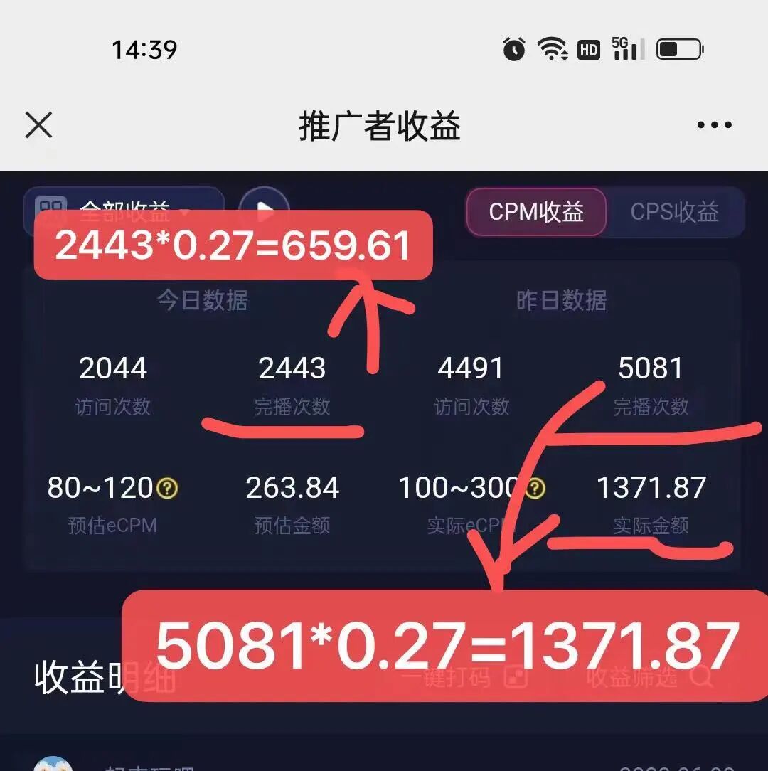 按照我给的教程剪辑作品,通过平台授权发布挂载上小程序链接,坐等收益即可。