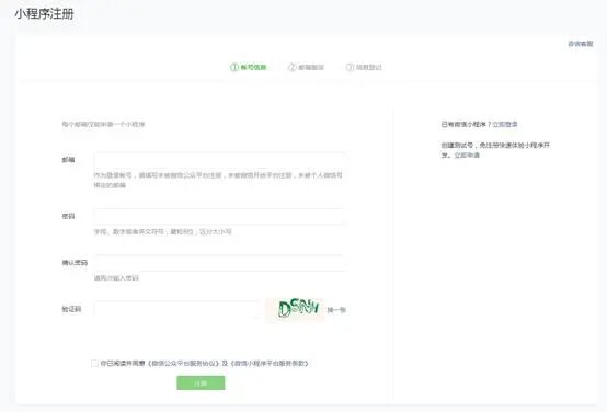 制作微信小程序之前要有小程序账号,可以在微信公众平台上注册,如果有公众号的小伙伴可以在公众号后台的小程序管理-快速注册认证小程序。另外,账号的主体类型需要根据自己的情况去选择哦,需要使用到微信支付功能的要选企业或者个体工商户的主体类型才行,个人主体类型是不可以开通微信支付功能的。