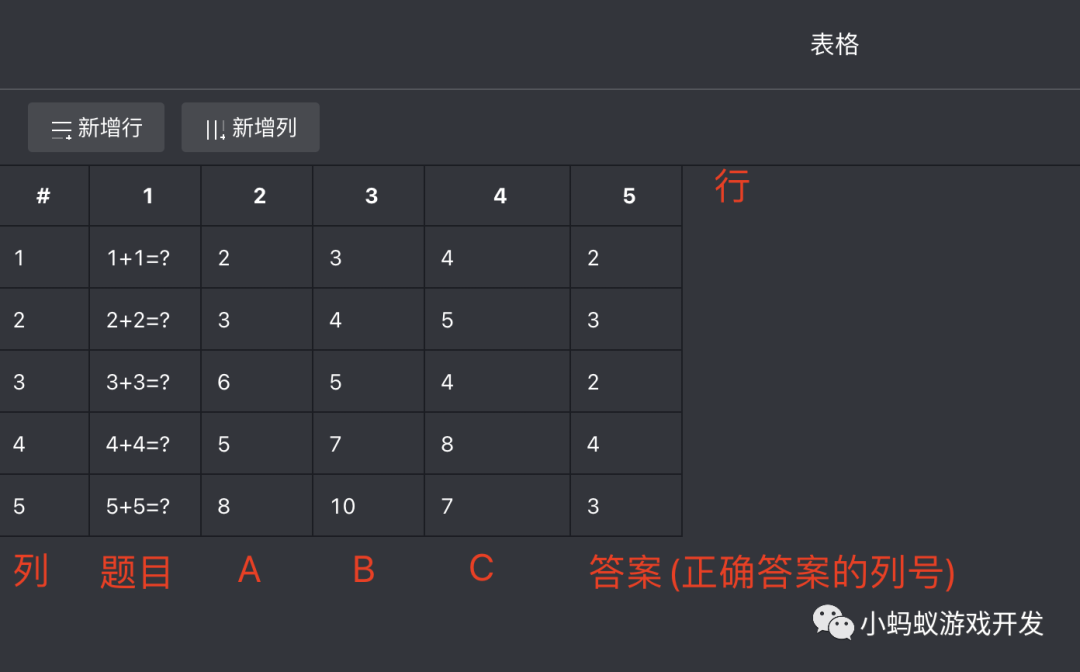 答题类的小程序主要以内容为主,就是说要去编辑题目和答案,对于题目的编辑操作,最合适的方式当然是使用表格进行编辑了。下面就介绍一个答题类小程序实现中最重要的角色:表格。