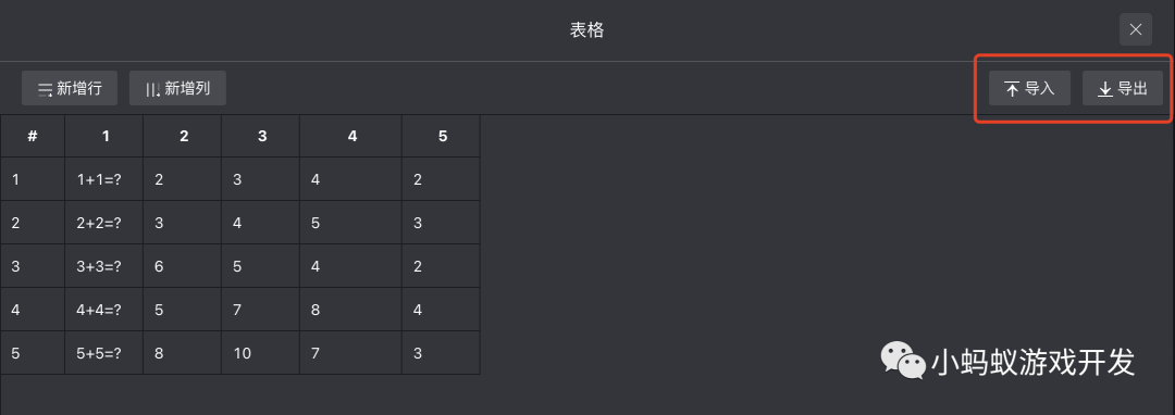 微信小游戏制作工具中的表格数据是可以进行导入,导出操作的, 你可以将表格数据导出来,然后在自己的电子表格软件中进行编辑,编辑完之后,再将数据导入进去。
