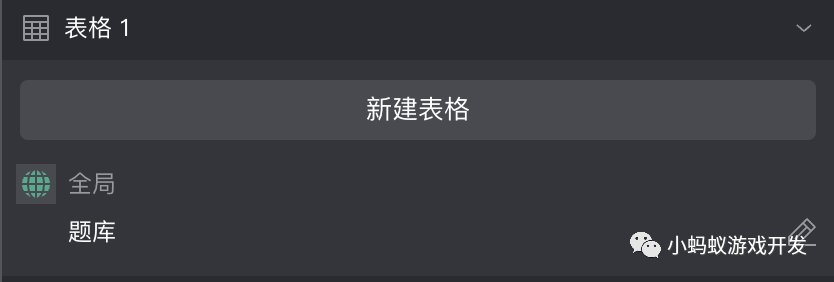 在微信小游戏制作工具中,创建和使用表格非常的简单。在数据区中点击“新建表格”按钮,即可新建表格了。