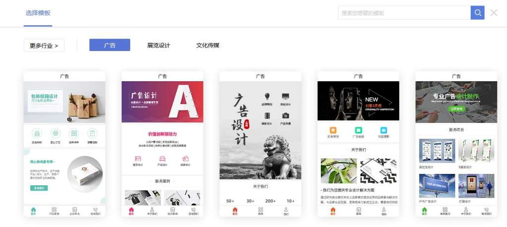 进入平台的小程序模板挑选页面,里面的小程序模板涵盖了很多的行业,每个行业的需求、风格都有一定的针对性,每个模板都是精心策划的,尽可能满足不同的需求。而且小程序模板都已进行了行业分类,只要点击左上角的“更多行业”按钮,在弹跳出的页面中进行行业挑选或是文字输入的搜索。