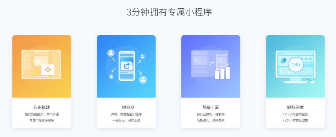 微信小程序满足了用户使用应用轻便的需求,因而用户习惯得以快速养成,如今,企业也纷纷抓住这一风口,开始微信小程序制作,其步骤只有简单的4步,即可低成本,快速完成一款微信小程序的开发。