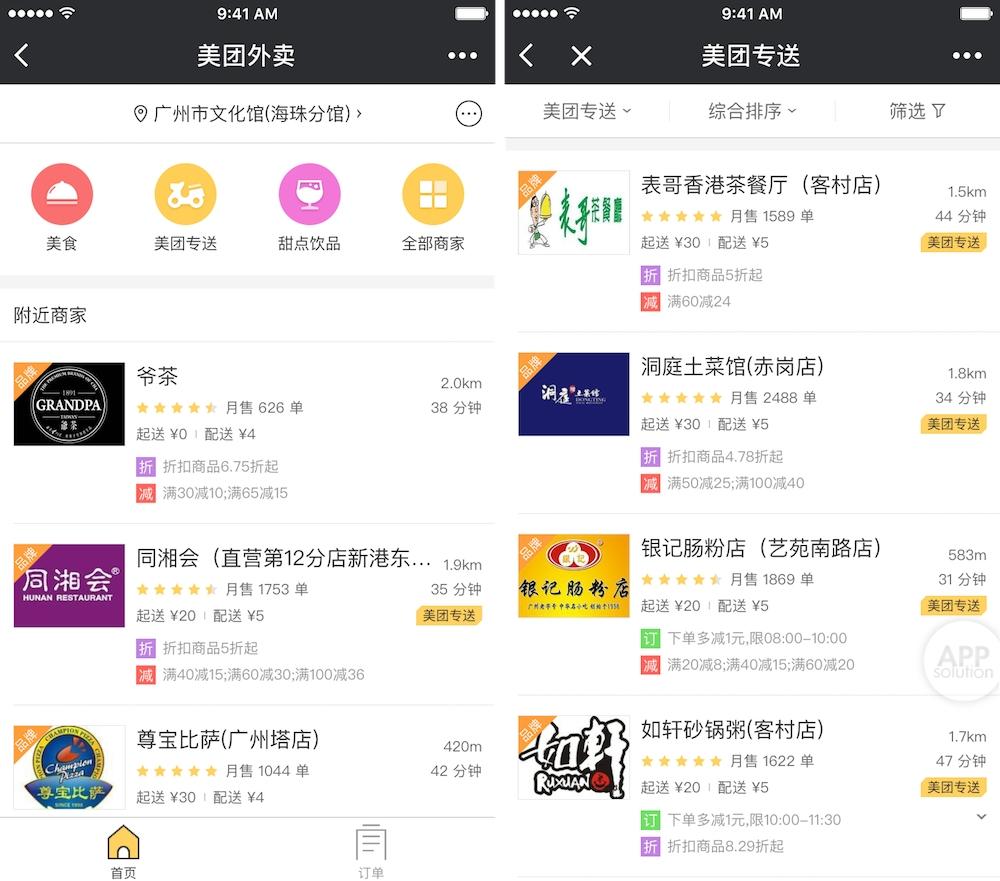 想叫外卖?打开美团的这款小程序,就能看到附近的各种美食商家了。你还能查看自己的过往订单,快速下单。